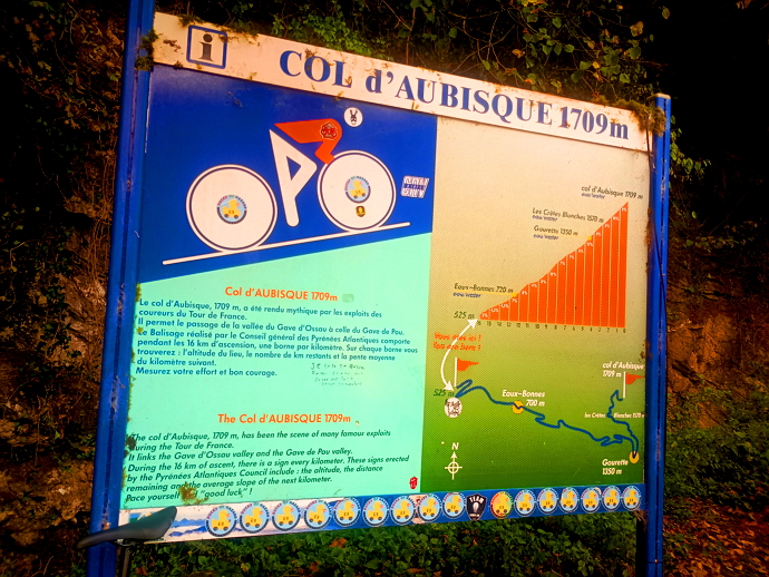 Como bien es sabido por todo aficionado al ciclismo, Aubisque puede enlazarse con Marie Blanque (antes) y el Tourmalet, o Hautacam, o Spandelles, o Luz Ardiden, o Cauterets, o... después.