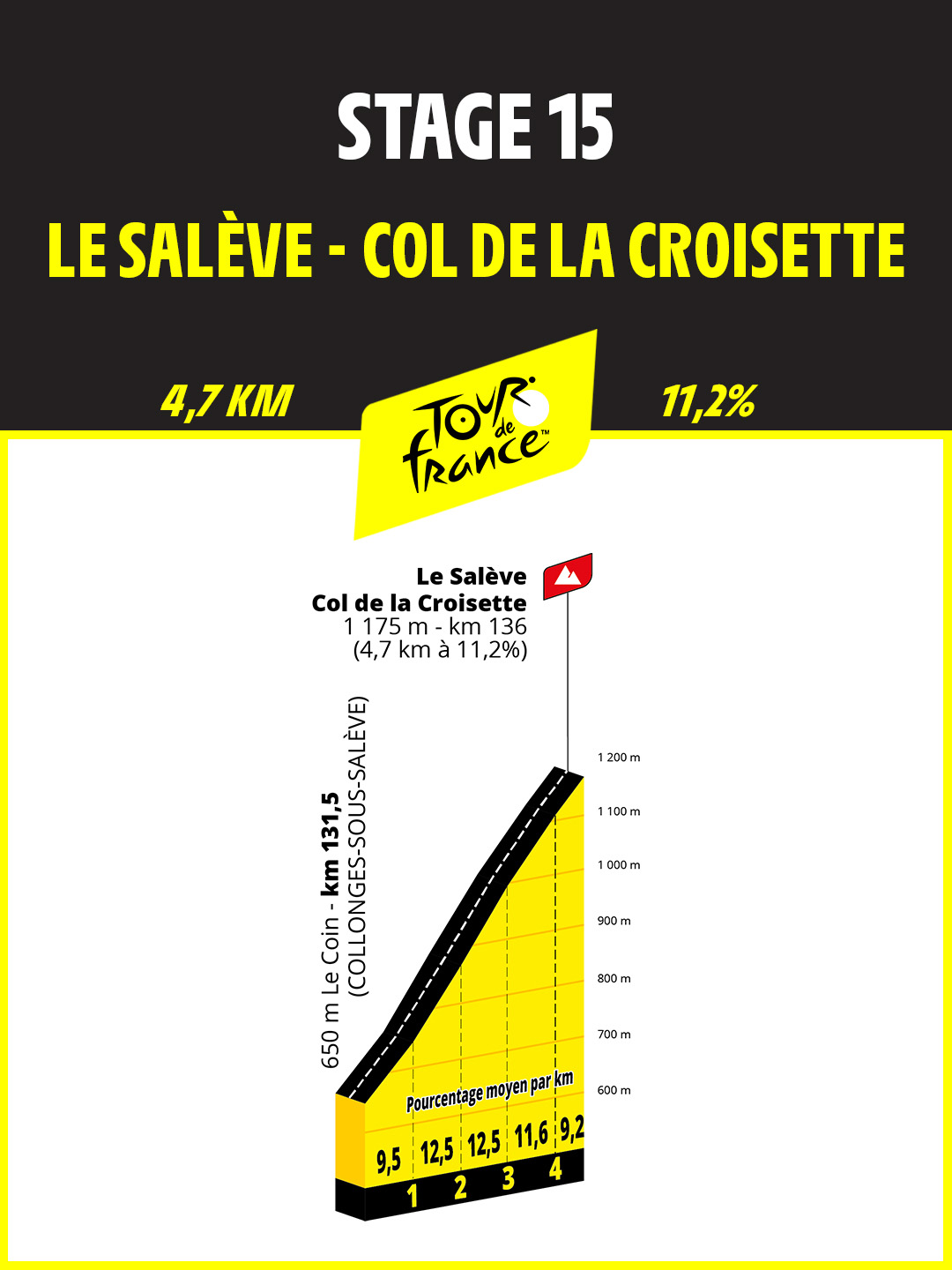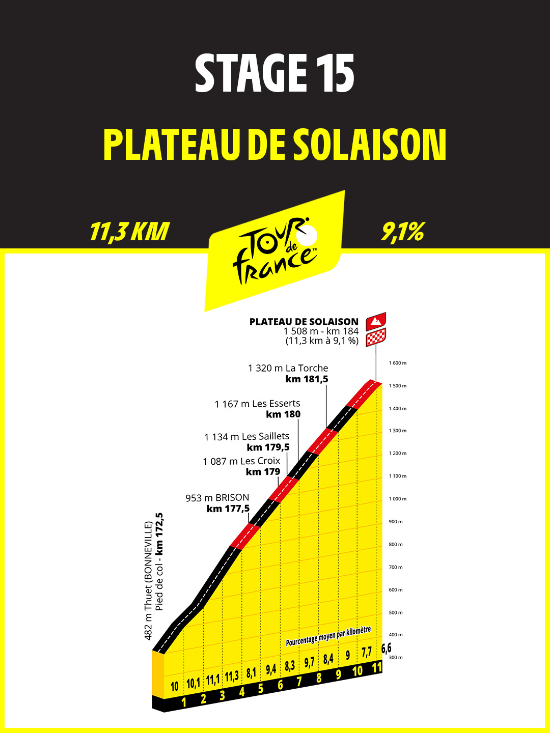 ETAPA 15: Posiblemente la de Plateau de Solaison sea la más decisiva del recorrido por su situación y dureza de los puertos. Se pasan el col de la Croisette y se finaliza en la dura ascensión de Plateau de Solaison.