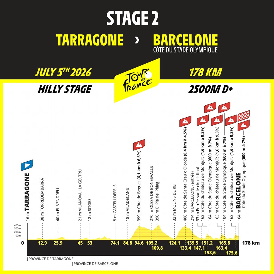 | 2 | Tarragona-Barcelona | 178 kms | 2500 m | Media Montaña | 05/07/26 |
