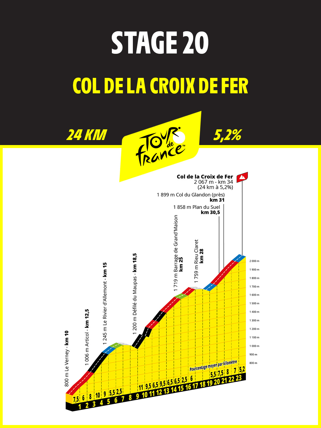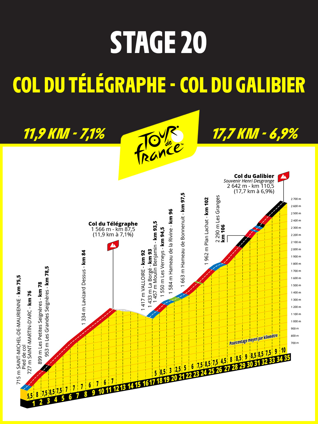 ETAPA 20: La etapa reina del Tour llegará en la penúltima jornada. Se sube Croix de Fer (por el sur), luego Telegraphe-Galibier y se concluye en Alpe D'Huez previo paso por el col de la Sarenne. Una etapa realmente impresionante.