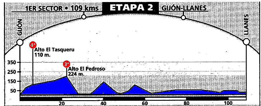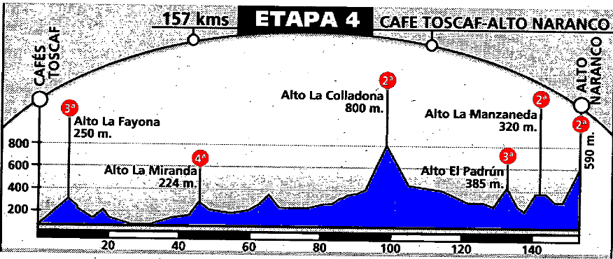 ETAPA 4: Primera llegada en alto en una etapa en la que se pasan La Fayona, la Miranda, la Collaona, Padrún y la Manzaneda antes de la llegada al alto del Naranco.