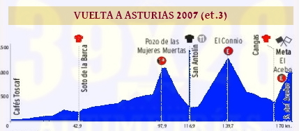 ETAPA 3: La jornada reina de la Vuelta 2007 será ésta, ya todo un clásico con los pasos de Pozo de las Mujeres Muertas, Connio y Santuario del Acebo.