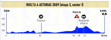 ETAPA 3: Contará con dos sectores, siendo el primero en línea pasando el alto del Robledo y meta en Avilés, en tanto que el segundo es una crono individual con salida y llegada en Piedras Blancas.