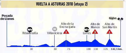 ETAPA 1: La ronda asturiana de 2010 cuenta con una primera etapa destinada más a los sprinters, en una jornada con una sóla dificultad montañosa, el alto de Ortiguero.