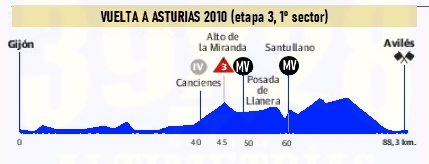 ETAPA 3: La tercera jornada cuenta con dos sectores, con uno inicial más bien para sprinters (se pasa el alto de la Miranda) y uno segundo que es una crono individual de 14,2 kilómetros en Piedras Blancas.