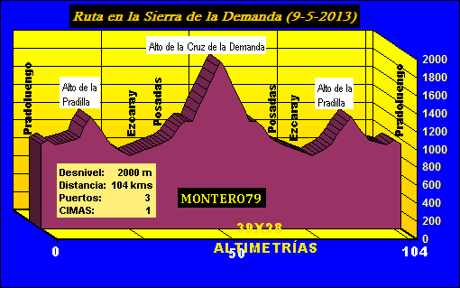 Casualidades de la vida, el 9 de mayo de 2013, exactamente veinte años después de aquel acontecimiento, diseñamos una ruta que partía de Pradoluengo (Burgos) para hacer varias ascensiones cercanas a Ezcaray, siendo la favorita, sin duda, la de la Cruz de la Demanda, el puerto "Pata Negra" de la Rioja en el reto CIMA. Pero una cosa es como diseñas las rutas y otra muy distinta como finalmente salen.