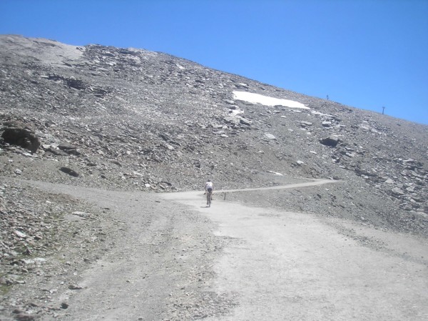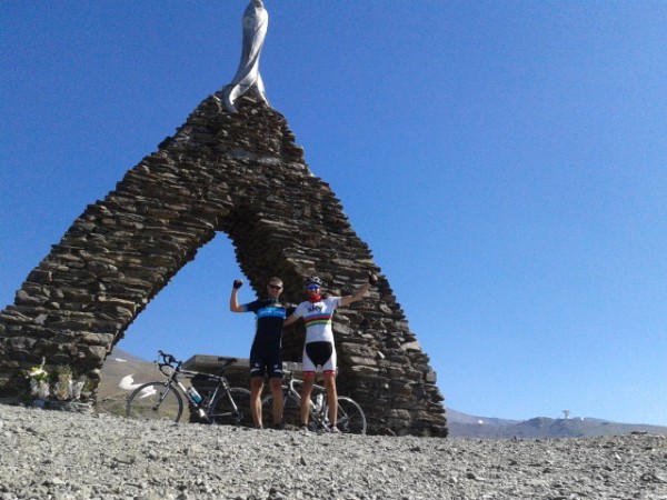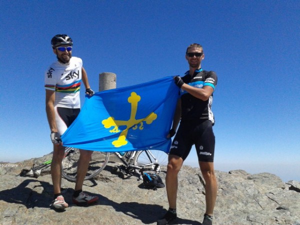 Esta vez, y nunca mejor dicho, acabamos de hacer cumbre. Más de las 3 de la tarde del 9 de agosto de 2013, cuando estoy hablando por teléfono con mi hermano y mi madre. Procuro cubrirme bien con las gafas para que Tino no vea que tengo los ojos casi llorosos. No sé qué pasa este año, pero son varias las ocasiones en que una ruta, un puerto, ha llegado a emocionarme. En esta ocasión me había marcado ascender la carretera más alta de Europa por su vertiente más dura, pero no encontraba compañía. Sin embargo, unos pocos días antes, Tino, otra de esas "leyendas urbanas" que ha tenido que dejar Asturies por el trabajo, me dice que no va a permitir que ascienda solo hasta ahí. ¡Cuánta gente fantástica te encuentras en la vida y en este deporte maravilloso que es el ciclismo!