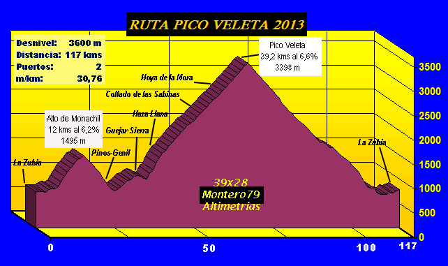 ¿Por qué esta ruta? La explicación es bien sencilla. Monachil es un puerto clásico en la Vuelta en donde hemos visto batallas de todo tipo, desde la de Valverde con Vinokourov en 2006, hasta la de 2009, con el pinchazo de Evans. Por su parte el Veleta tiene varias vertientes, pero hay una que será utilizada en la Vuelta a España en unos días (la de Haza Llana). Continuamos por Las Sabinas, por la belleza de la carretera, y culminar en el Veleta, con todo esto, ya era, además, una cuestión de orgullo. El puerto más duro de España, con más de 2500 metros de desnivel y un coeficiente APM superior a 600... Suficientes motivos.