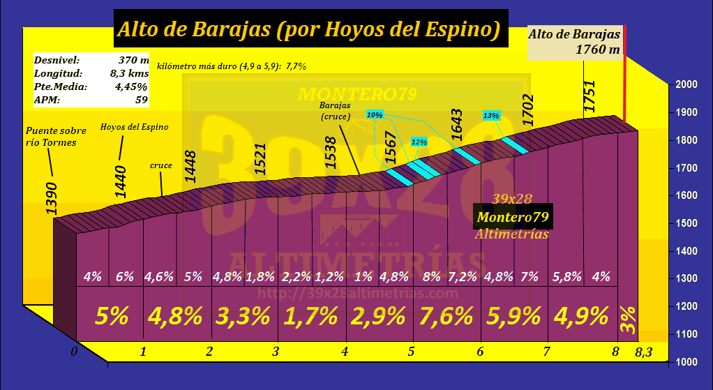 torno al 5-6%, con leves descansillos. El alto de Barajas se corona a