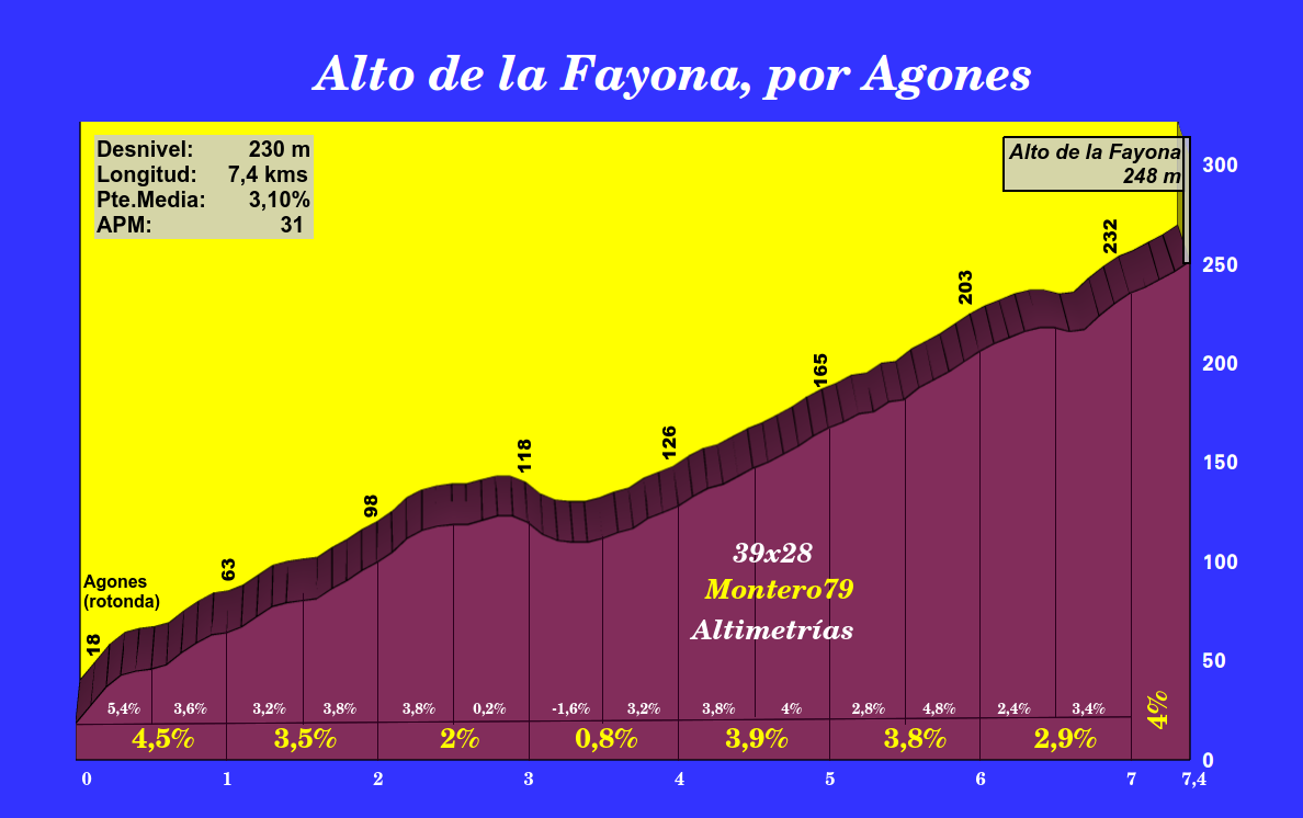 abajo). Este alto de la Fayona culmina tras 7,4 kilómetros de ascenso,