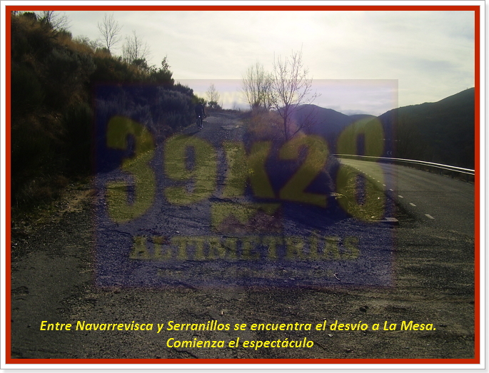 Hace unos años dejé aparcado el coche en Burgohondo para realizar una ruta por la zona, haciendo una primera visita a Gredos, a esos puertos que, hasta entonces, sólo había visto por la televisión. Me dirigí primero a Navalmoral, cuyo trazado era nuevo, ancho, y la carretera tenía poco que ver con la de la "carnicería de Vandenbrouke". A lo lejos, al sur, se distinguían unas antenas que pensaba que eran las de Serranillos, si las tenía... Mi segundo objetivo era la Mesa, una ascensión que partía de un desvío situado algo más arriba de Navarrevisca. Era un día duro, frío, solitario, otoñal. Al fondo se perdía entre la niebla el ascenso a Serranillos, mientras me encaminaba a esto, a La Mesa... Unos cuantos minutos más tarde, con viento huracanado y frío, más frío aún, divisaba desde la cima la inmensidad, a ratos, porque otros la niebla lo volvía a cubrir todo.