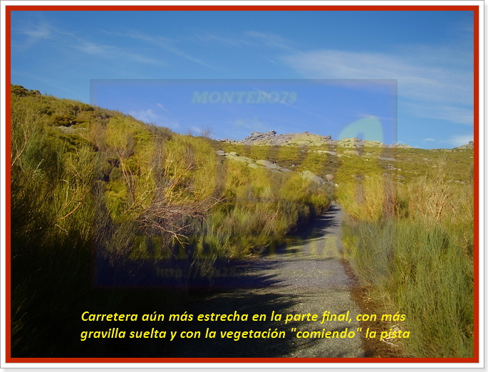 No existen prácticamente referencias a lo largo de la ascensión, con lo que conviene aprenderse "de memoria" que desde el paso canadiense hasta la cima aún quedarán cerca de tres kilómetros. Como podéis ver en las imágenes, la carretera aún se estrecha más por la vegetación en el último kilómetro (y algo más). La ascensión a La Mesa finaliza a 1680 metros de altitud, en un tramo recto, si bien, para alcanzar las antenas características de esta subida habrá que descender algunos cientos de metros.