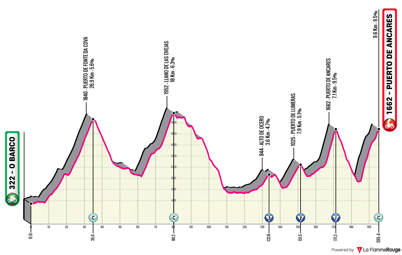 (inédito en la Vuelta), Llano de las Ovejas (inédito en la Vuelta) y