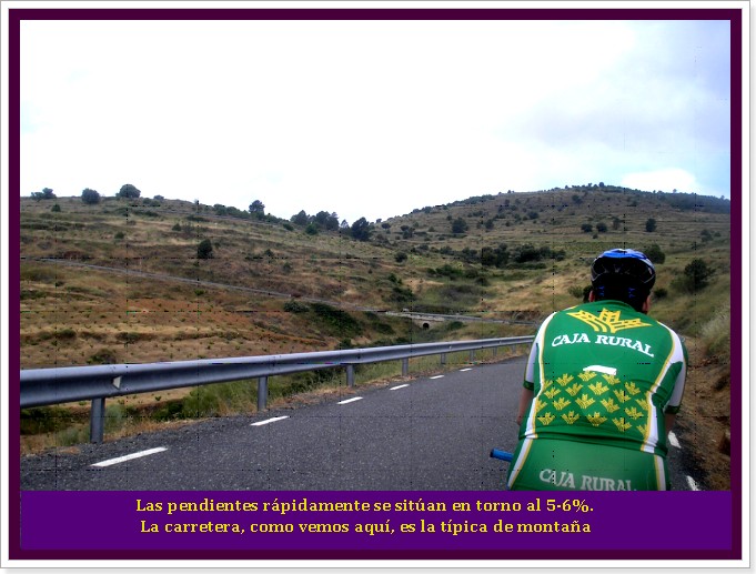 La primera fase del puerto (los 5,2 kilómetros iniciales) es posiblemente la más vistosa, pues la carretera serpentea por la montaña, permitiendo recrearnos con la cámara pues las rampas no son excesivamente duras.