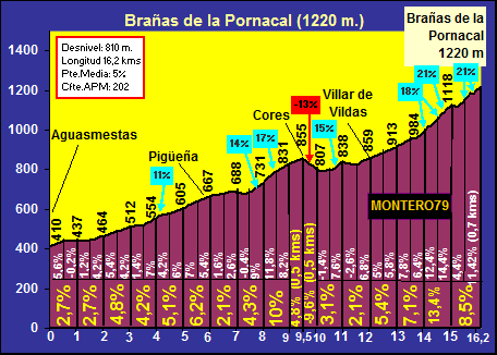 Esto es Pigüeña, en el kilómetro 5. Muy irregular la ascensión hasta aquí...