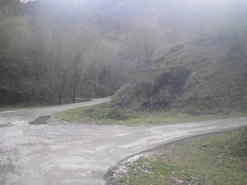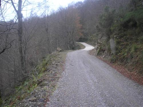 Este es el desvío. Continuamos de frente y dejamos a la derecha la carretera que va a los Bustios.
