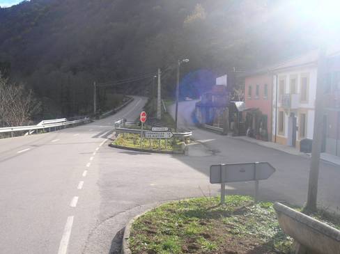 Este es el desvío que encontramos en la localidad de la Maravilla, hacia los Bustios. Arranca una de las ascensiones más duras de Asturias.