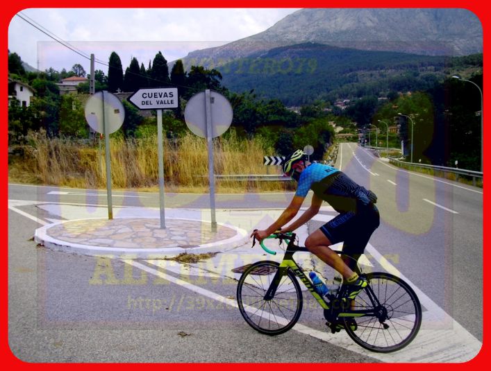 Situamos el inicio en el cruce con la carretera AV-P-706, la que asciende hacia Serranillos por Santa Cruz del Valle y atraviesa Mombeltrán con pendientes respetables (en torno al 5-6%). Hasta la misma localidad de Cuevas del Valle, en el punto en el que tomamos el desvío hacia las mismas calles del pueblo, es coincidente con esa vertiente este. A partir de aquí, sin embargo, la decoración cambia bruscamente y la carretera pasa a ser una pista empedrada (se pasa bien en bici de carretera), sucediéndose alguna que otra rampa en torno al 10%. Callejeo estrecho, bastante estrecho, y en el que debemos estar atentos para encontrar la pista hormigonada que sube por encima del pueblo y que nos permite alcanzar la tercera parte de la subida, también compartida con la vertiente aquí denominada como de Cuevas del Valle. Tras lograr encontrar la denominada calle de "la Calzada Romana" salimos de Cuevas del Valle y viramos a la derecha por una pista hormigonada (en buen estado) y señalizada como "Camino Rural" (ver fotos). La ascensión nos proporciona un breve respiro, pero las dificultades se incrementarán más adelante como la propia pendiente: con decir que hay un kilómetro a casi un 11% de pendiente media, rampas del 16% y que todo transcurre por una pista que parece perderse en el monte, es suficiente para darse cuenta de que esta vertiente es, sin duda, la más dura de las tres y añade un punto de dificultad a los puertos habituales y conocidos de Gredos. La pista de hormigón hará un nuevo viraje a la derecha buscando la carretera que desde la del Pico asciende a la Collada de la Centenera. Tras algo más de dos kilómetros salimos a ésta y afrontamos un tramo de bajada y encaramos definitivamente los últimos kilómetros, también duros, con varias "herraduras" antes de coronar la collada de la Centenera, a 1346 metros de altitud.