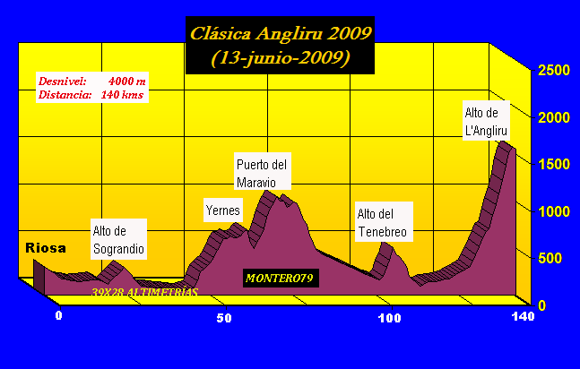 gran paso. Casi 4000 metros de desnivel, subiendo Peñerudes (la primera parte de Dosango) y Siones (o las Carangas), antes del tríptico final: Cobertoria-Cordal-Angliru. Extraordinariamente dura.