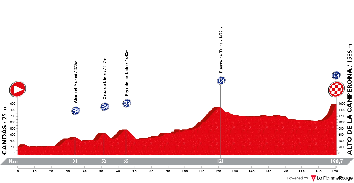 La salida de la siguiente etapa estará situada en Candás, Asturias, y la llegada, en uno de los clásicos de los últimos años, la Camperona. El coloso de Sabero dio buen resultado en la jornada unipuerto de 2016, aunque en esta ocasión ya se ha filtrado que la etapa pasará por Tarna, que se estrenaría en la Vuelta por esta vertiente: