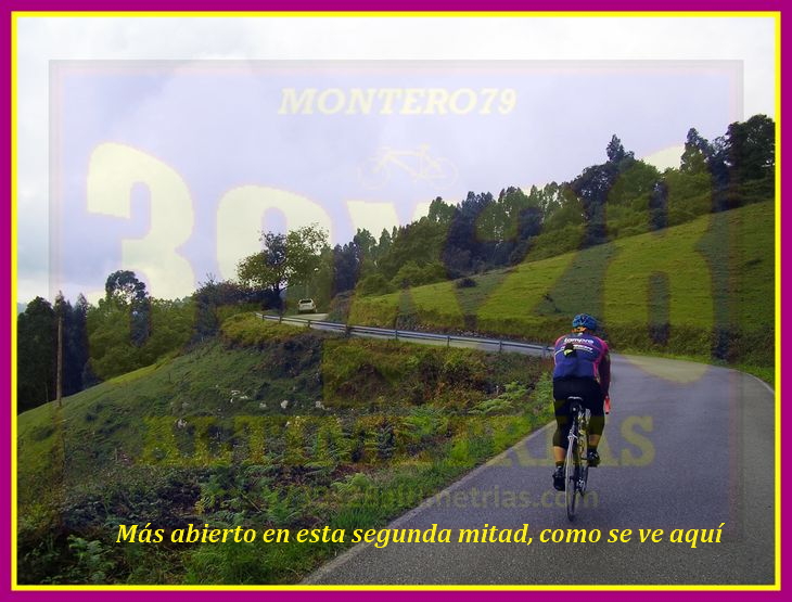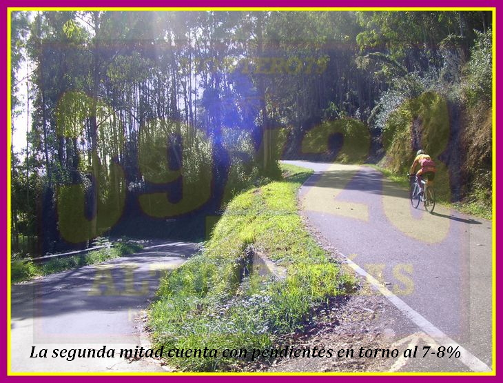 Esta subida concluye tras 4,4 kilómetros a una altitud de 435 metros de altitud, y bien puede enlazarse antes con la collada Pandenes o el alto de la Campa o, incluso la vertiente de Peón de la misma Cruz de Peón (haciendo un bucle por Villaviciosa), y, después con La Fumarea (y Picu Fariu) o el Curviellu, en un enlazado ideal para culminar en Gijón, localidad que, como todos sabéis escasísimas veces ha sido final de etapa en las competiciones profesionales...