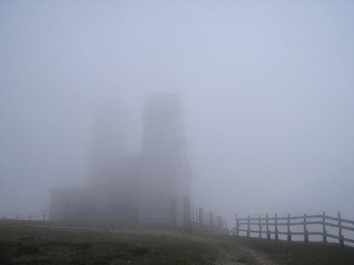 No será muy difícil encontrar la pista, y es que tras dar una gran curva de herradura, aún en el Brañillín, giramos a la derecha en dirección a la zona del telesilla, en donde nos encontraremos con dos señales de "prohibido el paso (sólo personal autorizado)". Será ahí donde comience este "infierno" de poco menos de 3 kilómetros al 13,3% de pendiente media. La primera rampa, una larga recta que alcanza el 15-16%, servirá para dejar rápidamente muy abajo el Brañillín. Pero la subida, tras unos 100 metros suaves, se tornará muy seria durante los siguientes metros. Una curva de herradura con una recta posterior que se eleva más y más hasta alcanzar el 24%... Esta rampa servirá para "perder de vista" el Brañillín en busca del Cuitu Negru. Llegamos a una amplia majada, en donde la pendiente se suaviza, aunque muy brevemente. La rampa posterior, casi una repetición de la anterior, alcanza el 25%, con nueva curva de herradura, esta vez de derechas. Entramos ahora en una amplia recta que en donde las pendientes rara vez bajan del 15%... Serán unos 600 metros desasosegantes, muy duros y que culminan en un tramo casi de bajada que servirá para coger fuerzas y afrontar de la manera más digna posible los últimos 500 metros. Porque el medio kilómetro final (lástima que ascendiera con niebla y no pueda mostraros mejores fotos) es de una dureza muy sostenida y aún mayor que la sobrepasada más abajo. Una recta larguísima que casi no baja del 17% hasta llegar al remonte el Cuitu Negru a 1850 metros de altitud. La pista continúa 50 metros más arriba, aunque la altimetría que veis abajo está realizada hasta el remonte de Cuitu Negru.