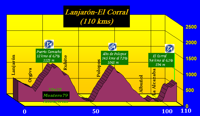 Ascensión que enlaza relativamente bien con algunos colosos, El Corral podría ser protagonista en la Vuelta... Aquí os dejo una hipotética etapa en la que se pasa el puerto Camacho (atravesado por la Vuelta hace más de 30 años) y la ascensión a Polopos (comparado por los amigos de Andalucía Cicloturismo con el Tourmalet y cuyo perfil podéis ver aquí, teniendo en cuenta que la altimetría sería hasta el kilómetro 14,5). Se desciende hacia Albuñol y seguidamente, por la carretera de la costa, se entra en la provincia de Almería para ascender este terrible alto de El Corral.