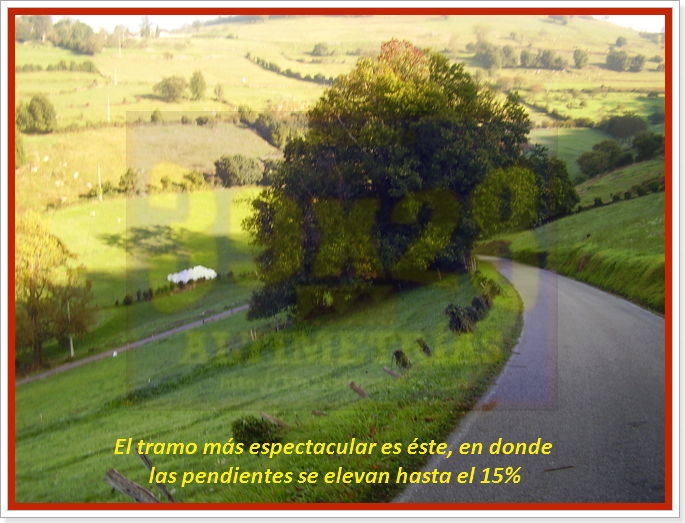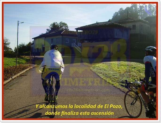 Todo un "muro" esta ascensión, corta, a la localidad de El Pozo, tomando como referencia Mouruso. La subida arranca de un desvío situado en Santullano, hacia La Peral y Mouruso, y ya desde un principio las pendientes oscilarán entre el 9 y el 11%, por una carretera estrecha, en buen estado, como bien se puede ver en las imágenes. Podemos decir que el tramo más espectacular de la subida se sitúa en ese primer kilómetro, con dos herraduras impresionantes, que destacan sobremanera, y en donde las rampas alcanzan el 15%. Tras llegar a la localidad de La Peral, en el kilómetro 2 giramos hacia El Pozo para seguir subiendo durante 700 metros más, dejando unos números globales interesantes: 2,7 kilómetros al 8,6%.