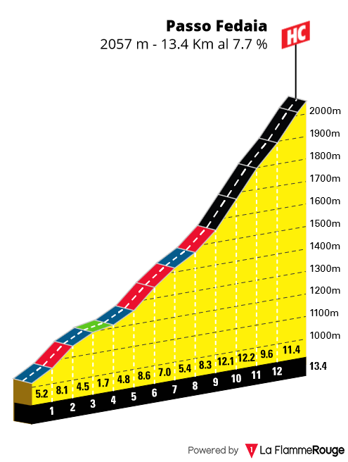 | Passo Pordoi | 780 m | 155 | 11,8 | 6,61 % | 0 | 9 | 3 | 0 |