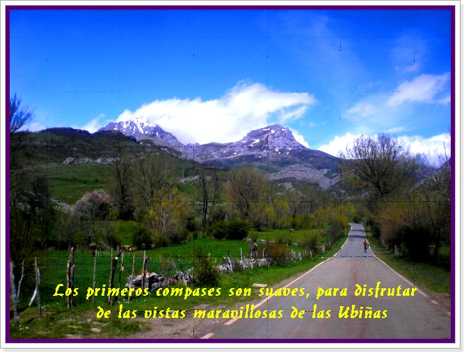 La vertiente leonesa del puerto de la Cubilla o de Pinos (como se conoce en esta cara sur) o alto del Palo (para ser más precisos en cuanto a toponimia) arranca de la localidad de San Emiliano y se sitúa geográficamente al lado de otros dos colosos de envergadura: Farrapona (también de tierra, y que vimos hace unos meses en la web) y Ventana (éste sí asfaltado). La primera parte, en asfalto, es suave, un regalo para disfrutar de las vistas de la imponente Peña Ubiña, con pendientes del 3-4%, hasta alcanzar la localidad de Pinos, donde, en un principio, la carretera pasa a ser de hormigón y, poco después, de tierra. La carretera se irá encajonando más y más en el valle, remotándolo a golpe de rampón... Especialmente podemos hablar de dos tramos que van a culminar en el reguero (sin canalizar): el primero alcanzará el 20%, si bien lo más significativo es la regularidad, pues durante unos 200 metros la pendiente no bajará del 15%. El segundo rampón estará situado entre los dos pasos (del reguero) llegando la pendiente al 17-18%. Tras este segundo paso la pendiente vuelve a incrementarse, si bien paulatinamente las rampas irán perdiendo intensidad poco a poco, hasta culminar en el puerto Pinos (primer altillo) y la pista girará a la izquierda para buscar la Casa Mieres, donde empezará el asfalto de nuevo. Los dos últimos kilómetros, sobre asfalto, se caracterizan por ser relativamente tendidos, ideales para disfrutar, también del puerto, que coronará a 1683 metros de altitud.