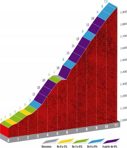 La ascensión cuenta con 11,1 kilómetros al 7,8%: