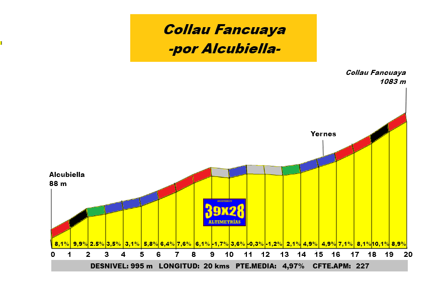 más de cuatro kilómetros de pendientes que alcanzan el 16-17%, lejos de