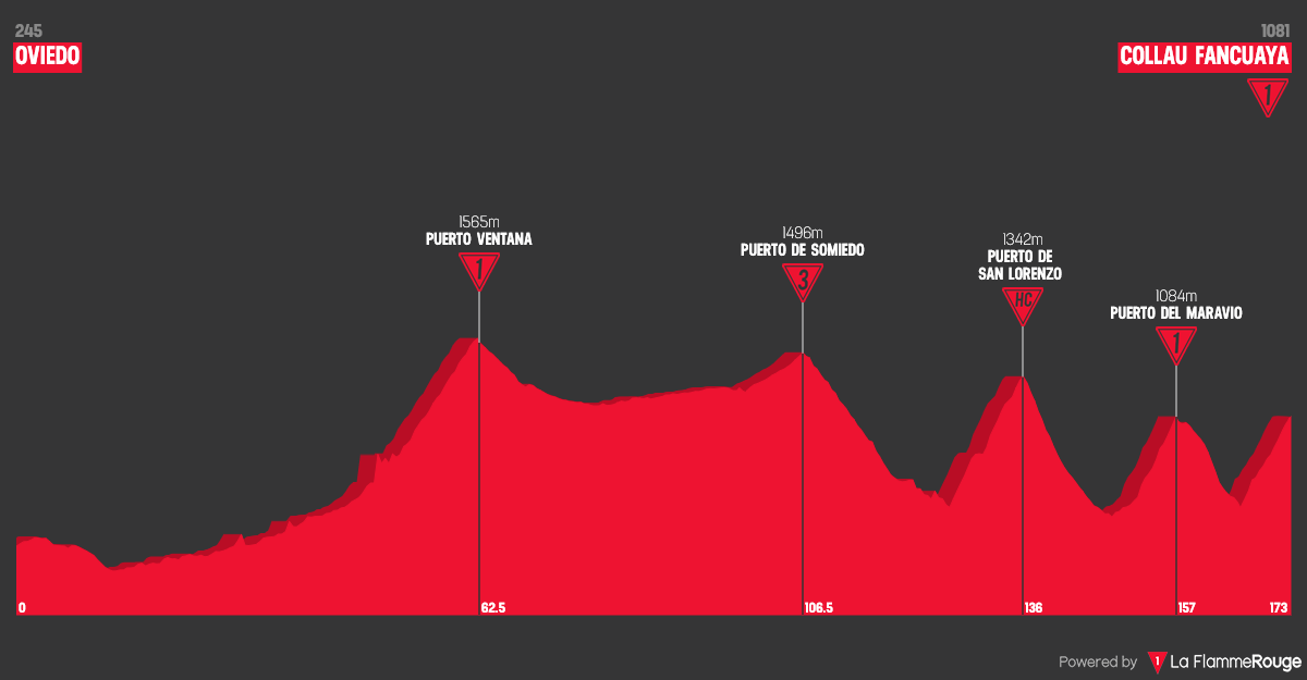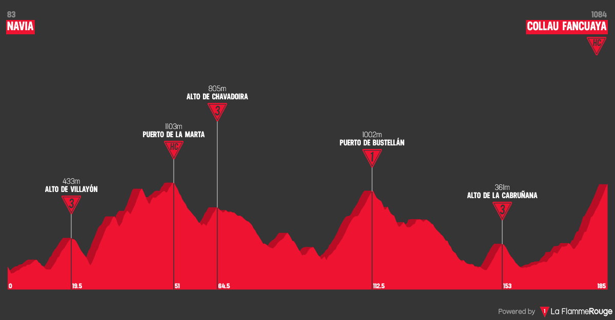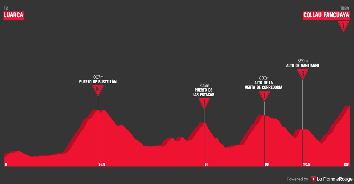 media del 7,7% y la posibilidad de encadenarlo con Venta de Corredoria (por San Martín de Ondes) y el explosivo Santianes (como en la etapa propuesta, en la que también se ascendería Bustellán por Cruz de Ayones y las Estacas, en un recorrido durísimo de tan solo 128 kilómetros).
