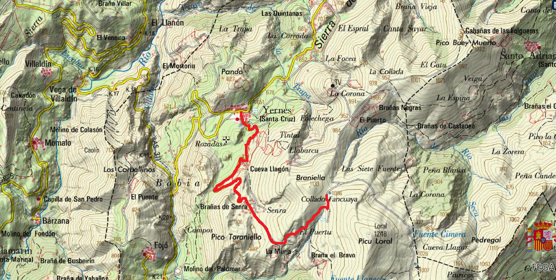 (aquí me venía bien el emoticono de incomprensión). En este mapa (del visor SIGPAC) podéis ver pintada de rojo la carretera que une Yernes con el collau Fancuaya.