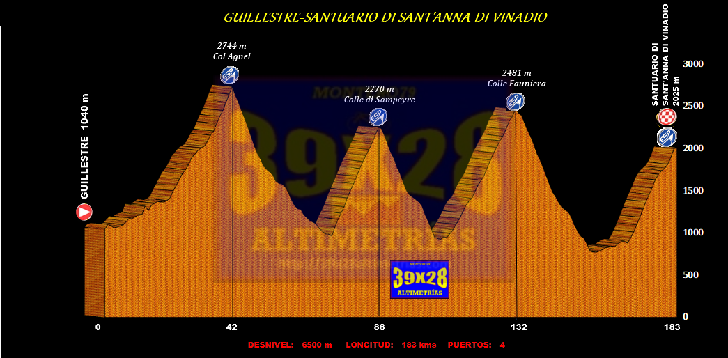 | ETAPA 39X28 (Guillestre-Santuario di Sant’Anna di Vinadio) | DESNIVEL | APM | Longitud | Pte.Media | <4% | 4-7% | 7-10% | >10% | CATEGORÍA |