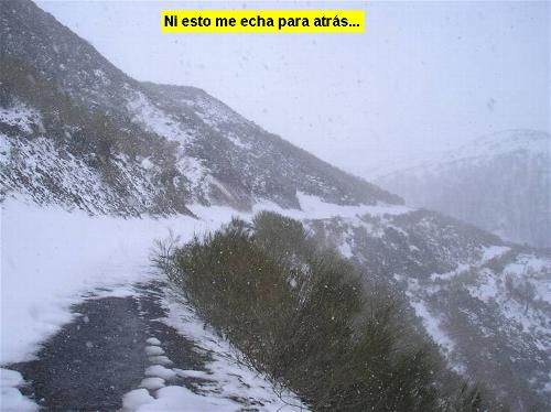 Son las 9:48 (tranquilos, es la única hora exacta que recuerdo de todo el recorrido, ya que no hay libro de anotaciones) cuando inicio mi odisea particular. La temperatura es, en cierto modo, agradable, pero sopla un fuerte viento que me va a permitir desarrollar a bastante velocidad los primeros kilómetros. Es en esa primera parte donde uno se va cuestionando ciertas cosas: ¿Llegaré de día? ¿Para qué narices haré yo estas rutas? ¿Cuánto me quedará para volver? ¿Voy al límite o aún puedo aguantar más kilómetros, más subidas, más nieve, más frío?... Las respuestas, una a una, con el paso de los kilómetros van siendo respondidas… Cuando llego a Casomera saco mi libreta de altimetrías para ir anotando las características de la primera gran subida del día: Vegarada. Es una de esas ascensiones que tengo ganas de mostrar en mi blog. Un puerto tremendo, durísimo, largo, y que cuenta con la principal virtud de ser de paso, aunque como La Cubilla: pista de tierra por una vertiente y carretera por la otra. En este caso es la asturiana la que es de tierra, al contrario que el coloso lenense. Cuando llevo ya más de hora y media de intenso pedaleo (primera hora, más de 25 kms, con BTT y viento de cara por lo general) inicio la parte decisiva de la subida a este puerto, aunque entre Casomera y Rioaller se suceden por igual tramos de descenso con fuertes rampas, y todo ello aderezado por espectaculares paisajes como los de las Foces de Rioaller. Llueve, diluvia, cuando las atravieso… Y tras salir de ellas una impresionante rampa empieza a ponerme a prueba. Es el calentamiento para lo que se me va a venir encima en poco tiempo, pues en el mismo pueblo de Rioaller tengo que hacer verdaderos ejercicios de equilibrismo para ir venciendo a rampas, algunas en asfalto, algunas en hormigón, que sobrepasan ampliamente el 20%. Da igual, hoy estoy totalmente mentalizado para vencer a las dificultades de la carretera… Ya veremos, más arriba, si también, a las inclemencias meteorológicas… Cuando me introduzco de lleno en la arboleda que protege buena parte de la subida a Vegarada parece que el viento deja de soplar con tanta intensidad. Un ligero respiro, ya que llevo más de 30 kilómetros con aire “de cara”. Pero no hay tiempo para alegrarse pues la sucesión de muros de este puerto es más que descomunal. Todo ello se ve agravado por una pista que, a tramos, está bastante rota, con mucha piedra suelta… y mojada, para empeorarlo aún más. Cuando llego al Mayau Carbayalín, a más de 1000 metros de altitud, ya voy pensando que lo peor ha pasado. ¡Qué ingenuo! El espectáculo, tras pasar esta zona, es grandioso… Curvas de herradura, ventiscas, rampas del 20% cubiertas de nieve… ¿Para qué queremos más? Pero aún no he visto algo especial que me convenza de que hay que dar la vuelta. Tengo que continuar hasta la cima…y no hay otra solución… Cuando llego a la zona de los puertos de Vegarada, conjunto de cabañas ganaderas situadas en lo alto del puerto, hay tanta nieve que pierdo completamente la orientación, es decir, la pista que sigue hacia León. Dubitativo, continúo por uno de los caminos que, finalmente, es el correcto, que va a desembocar en el límite de Asturias con León. Allí en lo alto, cuando ya son las dos de la tarde (parece que voy a llegar de día), me paro durante 5 minutos. Craso error: en ese momento se me congelan los dedos y el descenso de Vegarada es terrible (al frío reinante se suman los pequeños copos de nieve que van adornado mi chaqueta de Altimetrias). Arribo en un bar, tras 10 kms de bajada, y soy incapaz de quitar el casco. Agarrotados los dedos, durante 15-20 minutos hago inútiles intentos hasta que al fin lo consigo. Dos cafés, una chocolatina,… Hay que avituallarse bien, pues al frío y la nieve se suman las dificultades orográficas del día. Aún tengo por delante las ascensiones a Valdeteja, Cármenes y Pajares. La subida al primero roza lo dantesco, pues, si bien la primera parte la voy solventando con suficiencia, es cerca de la cima cuando comienza a nevar. Pero es en momentos como ese cuando hay que echar el resto. No vale la pena lamentarse. Hace frío, vale. Está nevando, vale. Te queda poca bebida, vale. Te duele una rodilla, vale. ¿De qué sirve quejarse cuando estás a más de 60 kilómetros de casa y hay nieve por todas partes? ¿Acaso va a aparecer por aquí algún mago de una tonta película americana? No, aquí lo único que sirve es pedalear y concentrarse y regular el esfuerzo y echarle…eso.
