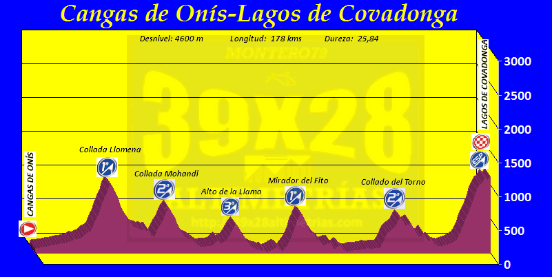 Debajo podéis ver un diseño de etapa con final en Lagos de Covadonga,