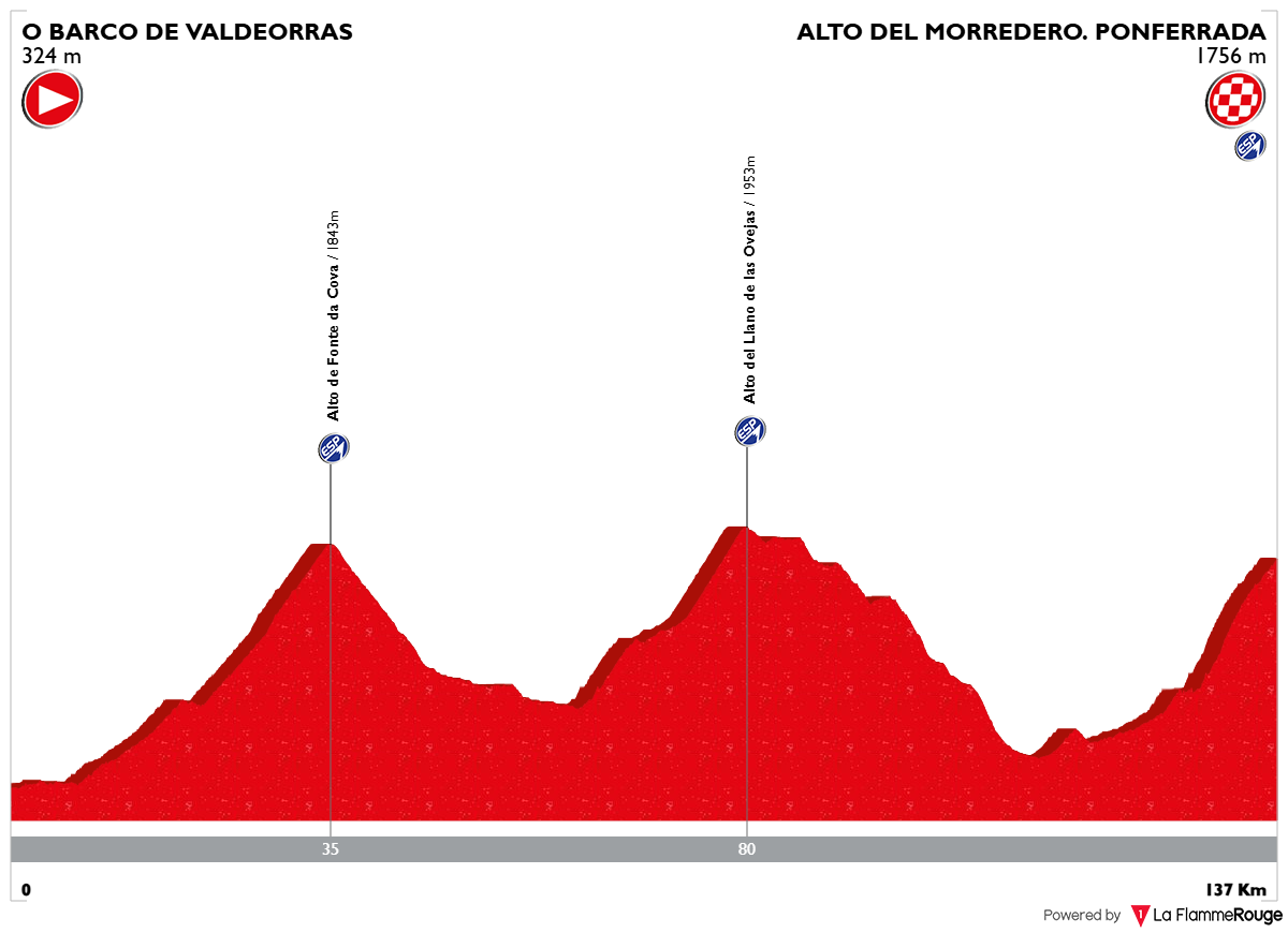 Y ahora, si quieres ganar una discusión a alguien que te dice que no es posible etapones como en el Giro o en el Tour, le muestras esto, saliendo también de O Barco de Valdeorras y llegando, también al alto del Morredero por Peñalba y en menos kilómetros...