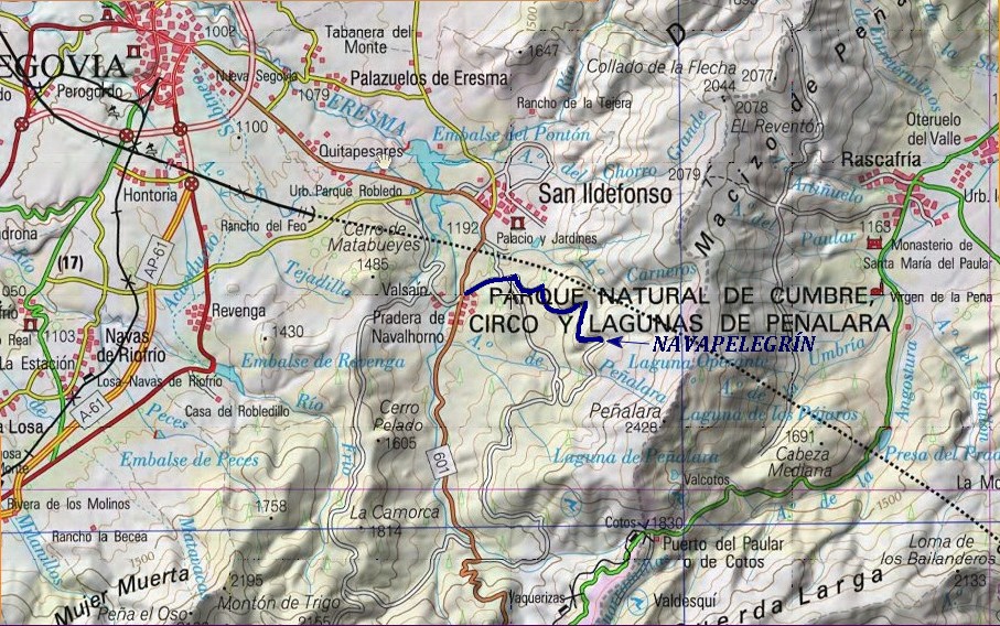 Al lado de los gigantes de Guadarrama emerge la ascensión a Navapelegrín, la cual arranca de la localidad de La Pradera de Navalhorno, en un cruce de la carretera que, desde La Granja, se dirige al puerto de Navacerrada por las míticas "7 revueltas".