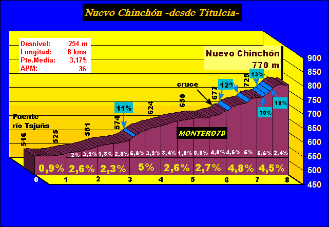 es la altimetría de la ascensión a Nuevo Chinchón, partiendo desde la