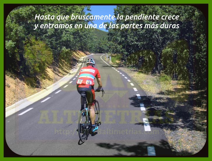 En el perfil que veis bajo estas líneas podéis ver los datos globales de la ascensión hasta la misma cima, pero también hasta el collado de Ballesteros, hasta donde el Villuercas puede utilizarse como puerto de paso, números de un puerto de primera categoría, sin duda.