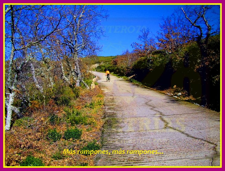 El Pico Villuercas por esta vertiente puede enlazarse, como ya comenté antes, con el collado del Mazo (y éste, a su vez, con el puerto de Berzocana), o con la subida a Navezuelas, lo que lo convierte en una de las subidas más duras de la península.