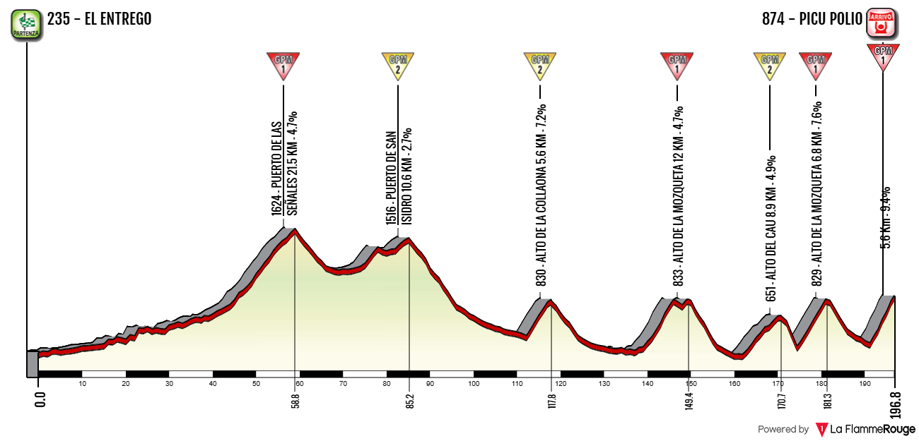 Una etapa posible con final en el Picu Polio, podría ser ésta... 197 kilómetros y más de 5000 metros de desnivel en una jornada sin Angliru, Cobertoria, San Lorenzo y a base de otros excelentes puertos de la zona.