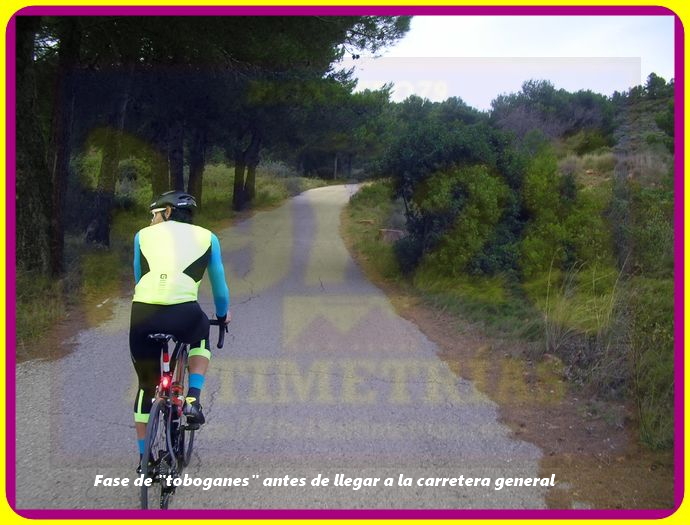 en el centro, y varios "toboganes" después; carretera más ancha al