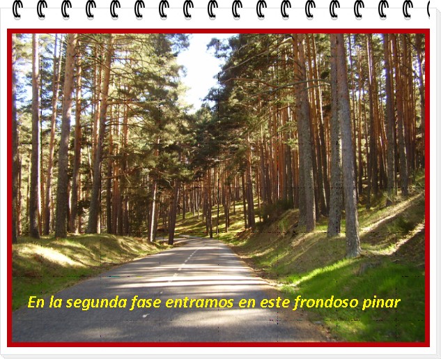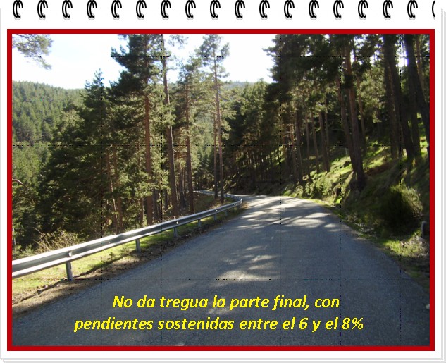 carretera se sumerja en un frondoso pinar (y así, hasta la cima).