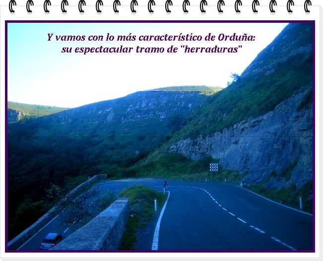 La cara norte del puerto de Orduña se inicia en la localidad del mismo nombre (Orduña), y cuenta con una primera fase casi plana, con tendencia ascendente, sin embargo, pero no será hasta casi los dos kilómetros cuando las rampas empiecen a tornarse duras. La carretera se mete de lleno en la arboleda en un principio, aunque poco a poco irá despejándose para acometer el tramo más espectacular, el de las herraduras, cuyas pendientes llegan aquí al 14-15%.