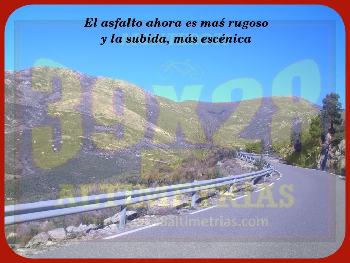 En lo que atañe a Pedro Bernardo por esta vertiente, la clásica (aquí ya hemos visto la de Lanzahita y la carretera antigua, mucho más duras), es más bien llevadera. Iniciamos la subida en un cruce de la carretera CL-501 hacia Pedro Bernardo. Rampas en torno al 5-6%, carretera en buen estado, serpenteante y vistosa hasta la localidad de Pedro Bernardo, donde la pendiente decae y decae hasta volverse plana (y casi bajada). Así, el paso por el pueblo se vuelve agradable (ya sabéis que si queréis "fiesta" podeis tomar, antes de entrar en la localidad, un desvío a la izquierda por una carretera hormigonada de unos 400 metros de longitud y una media superior al 13%). Volveremos a ponernos cuesta arriba a la salida de Pedro Bernardo, pasando el desvío hacia el camping (y la vertiente que proviene de Lanzahita). El asfalto aquí cambia y se vuelve más rugoso, lo que con el incremento de pendiente (sí, aquí está el kilómetro más duro del puerto, con rampas que alcanzan el 7-8%) y un par de "herraduras" le dota de espectacularidad y nos ayuda a abandonar Pedro Bernardo, entrando en una fase preciosa, para deleite de cualquier cicloturista: la pendiente decae y la carretera transita por una especie de balcón del Tiétar de ¿4 kilómetros? ¿5? Un tramo espectacular en que cambiamos de ladera y la dureza vuelve poco a poco, sosteniendo una pendiente sobre el 5% ya hasta coronar. Un puerto largo y agradable para cualquier cicloturista, sin rampones dignos de mención y con una segunda parte, tras Pedro Bernardo, visualmente preciosa: todo un coloso de Gredos.