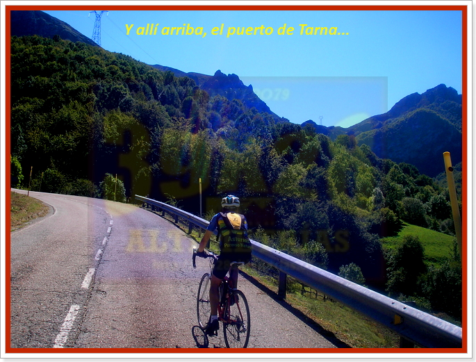 A partir de Campo de Caso la carretera se estrecha (bastante) y ya no contaremos con arcén, siendo la subida más regular, generalmente, aunque aún encontraremos leves descensos, como el anterior a Soto. Más cerrada, también, más encajonada, hasta el desvío a Tarna... El siguiente "punto de dureza" del puerto de Tarna se encuentra poco antes, también, del desvío a Tarna (pueblo), con un tramo en donde las pendientes alcanzan el 13%. El puerto ahora ya es colosal, con varias curvas de herradura que se divisarán perfectamente desde el último túnel antes de coronar. Un puerto "gigante" que corona a 1490 metros de altitud, si bien podemos seguir ascendiendo hasta Las Señales, ya en León, a 1625 metros. Si optamos por descender enlazaremos con la carretera que une Cangas de Onís con Riaño, otro idilico lugar...