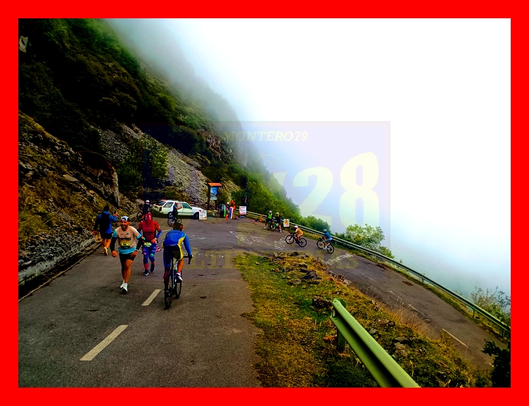 En los últimos metros hay niebla y ya sólo voy pensando en aquella primera etapa del Angliru de 1999, aquella de Chava y Tonkov, donde apenas se les veía. Yo tampoco veía apenas al resto, a los que subían corriendo y en bici, casi ni la línea de meta, pero aquí estaba ya para concluir en el puesto 41.