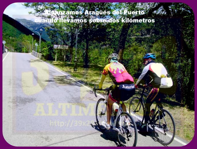 de una estrecha carretera por Aragües del Puerto, término municipal en